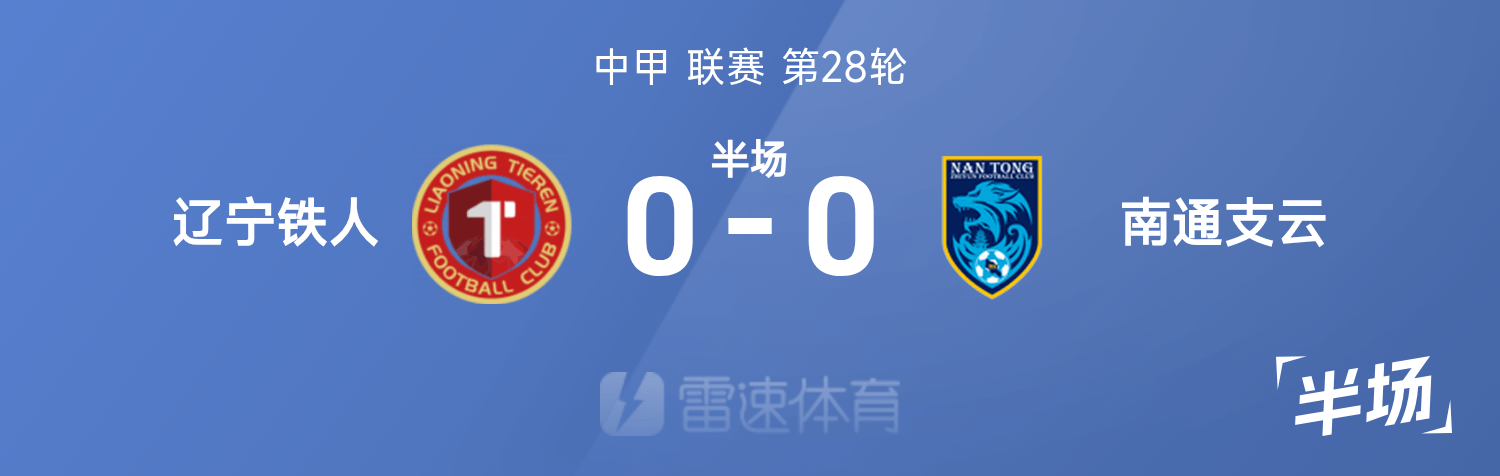 中甲半场:邦本宜裕数次造险,辽宁铁人0-0南通支云