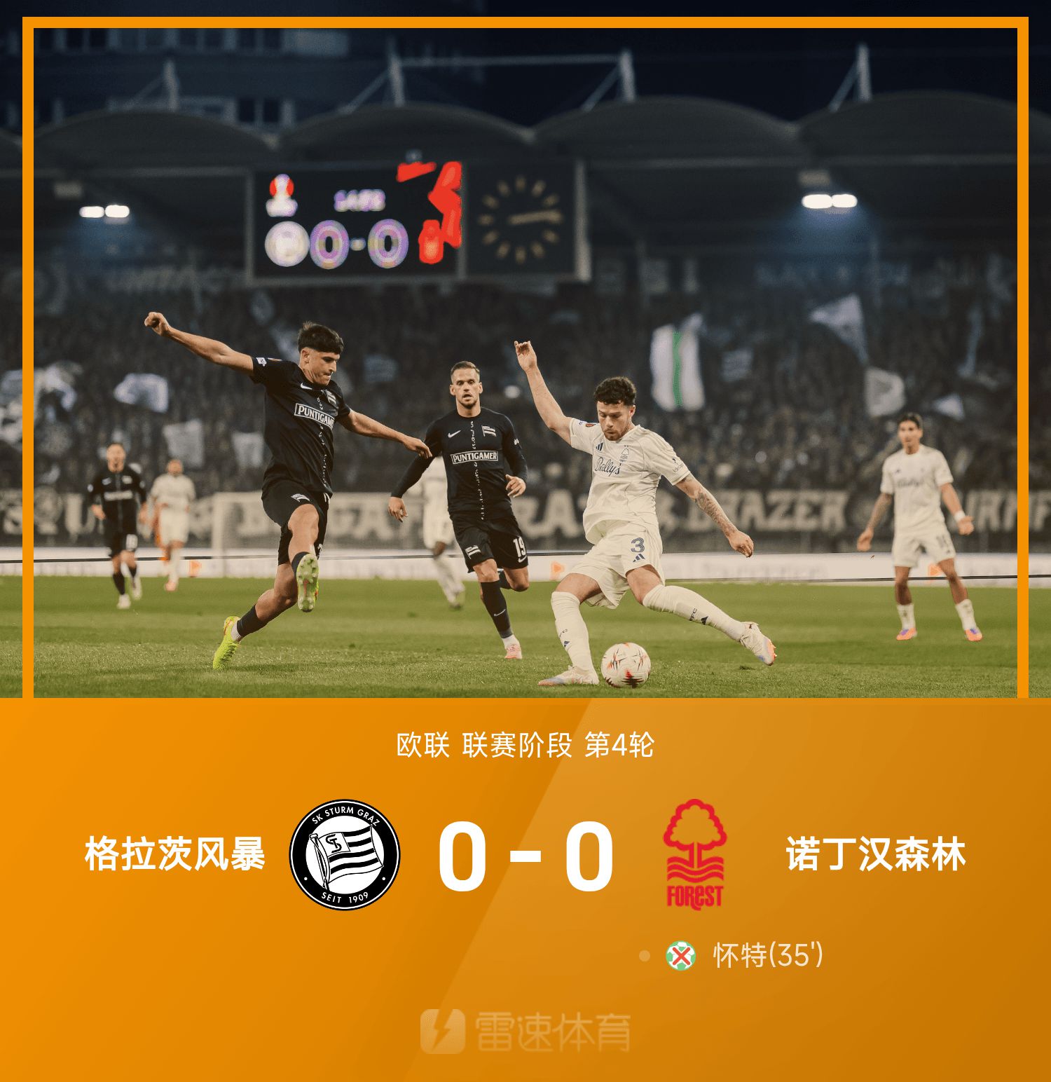 欧联战报:怀特失制胜十二码,多明格斯中柱,森林0-0格拉茨风暴