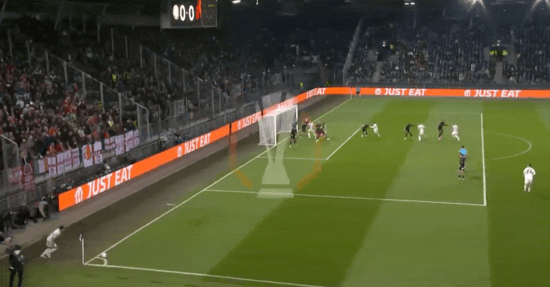 10’森林队前场威胁定位球,麦卡蒂迎球推远角稍稍偏出立柱