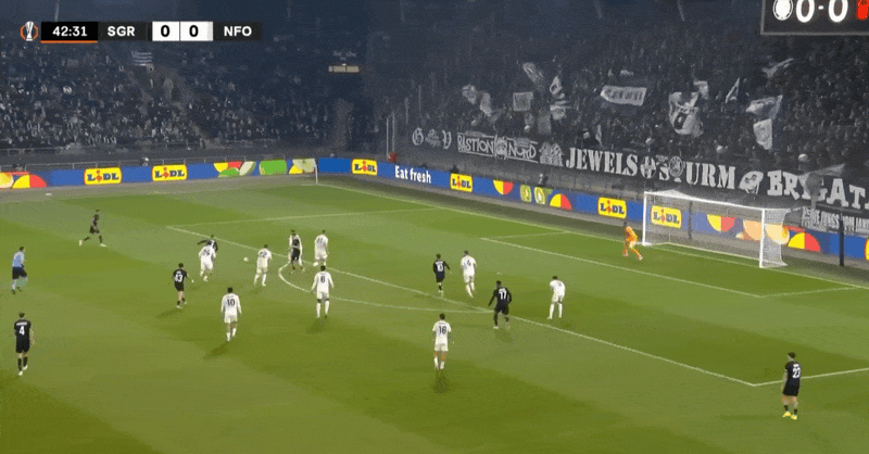格拉茨风暴首发阵容:1-克里斯滕森、17-卡里克、47-埃乌、35-盖尔霍夫(57’24-拉瓦勒)、23-马利克(88’2-米切尔)、4-斯坦科维奇、10-基泰什维利(58’11-卡永博)、19-霍尔瓦特(78’25-希尔兰德)、43-霍德尔、77-马龙(57’20-贾塔)、8-罗兹加