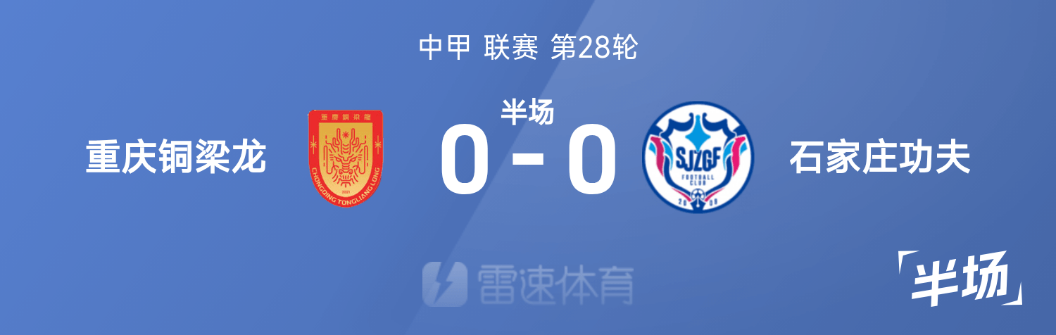 6686体育官网10月26日讯 25赛季中甲联赛事第28轮,重庆铜梁龙迎战石家庄功夫。半场战罢,双方赛果分暂为重庆铜梁龙0-0石家庄功夫。