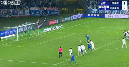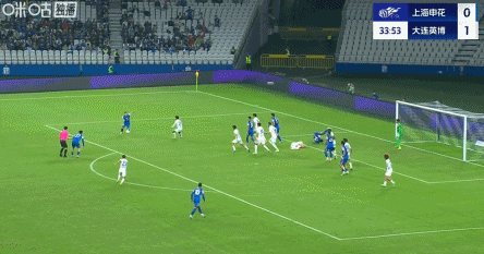 90+4’申花再失良机!汪海健三秒区前沿吊射,皮球击中横梁