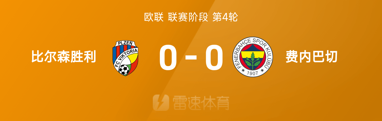 6686体育官网11月07日讯 25/26赛季欧联联赛事阶段第4轮,比尔森胜出局0-0互交白卷闷平费内巴切。