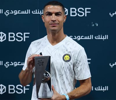 6686体育官网10月26日讯 在沙特联第6轮客队场对阵哈森姆的竞赛之前,C罗领取了由联赛事官方颁发的周最佳进球得主奖杯。