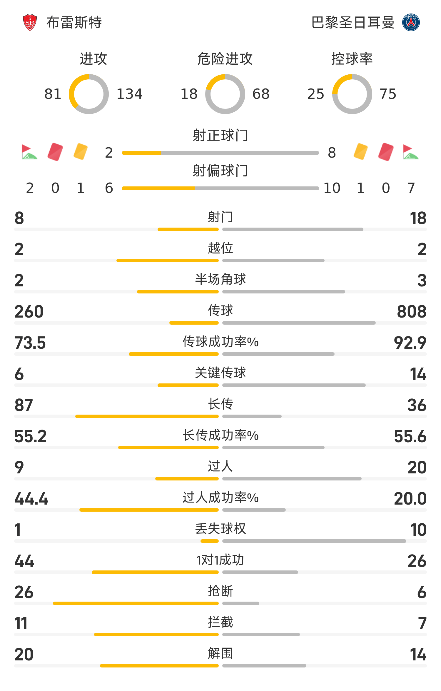 布雷斯特首发阵容:1-马耶茨基、77-拉拉、44-库里巴利、2-洛克(79’27-冈多)、4-迪亚兹、10-德尔卡斯蒂略(90’12-佐格贝)、8-马涅蒂(78’33-马卡卢)、7-埃比贝(67’24-图萨尔)、13-乔塔德、99-姆布普(67’17-巴尔德)、19-阿约克