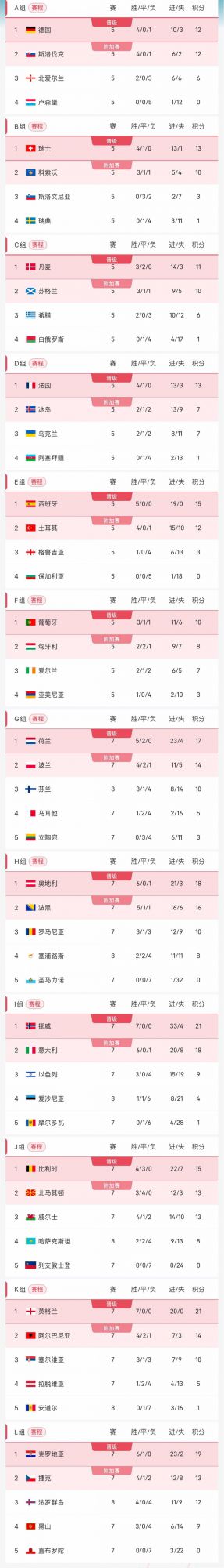 还剩1轮!世欧预出线形势:英法克已晋级,最后9席小组直通末轮揭晓