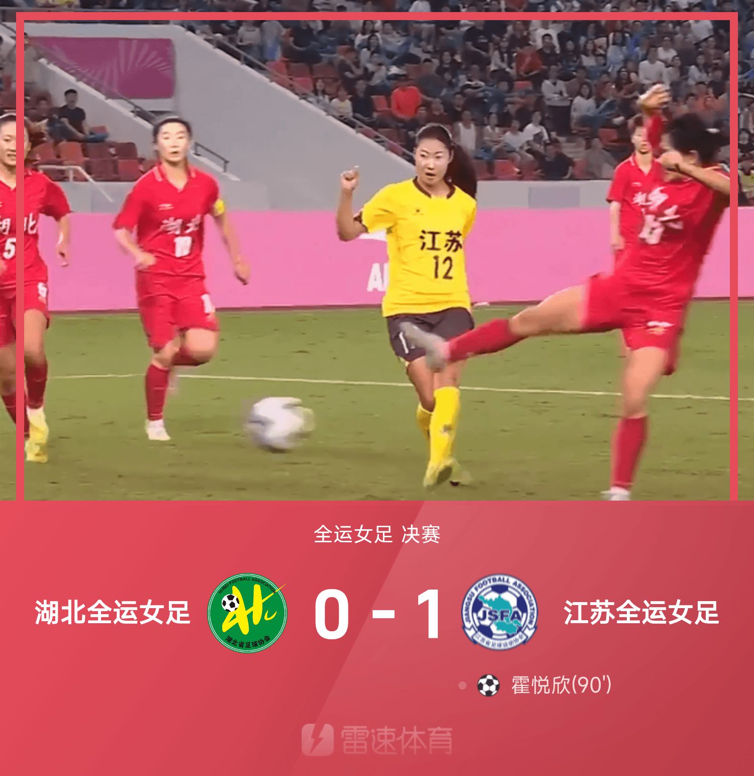 全运女足战报:霍悦欣最后一投,江苏女足1-0战胜湖北女足夺金牌