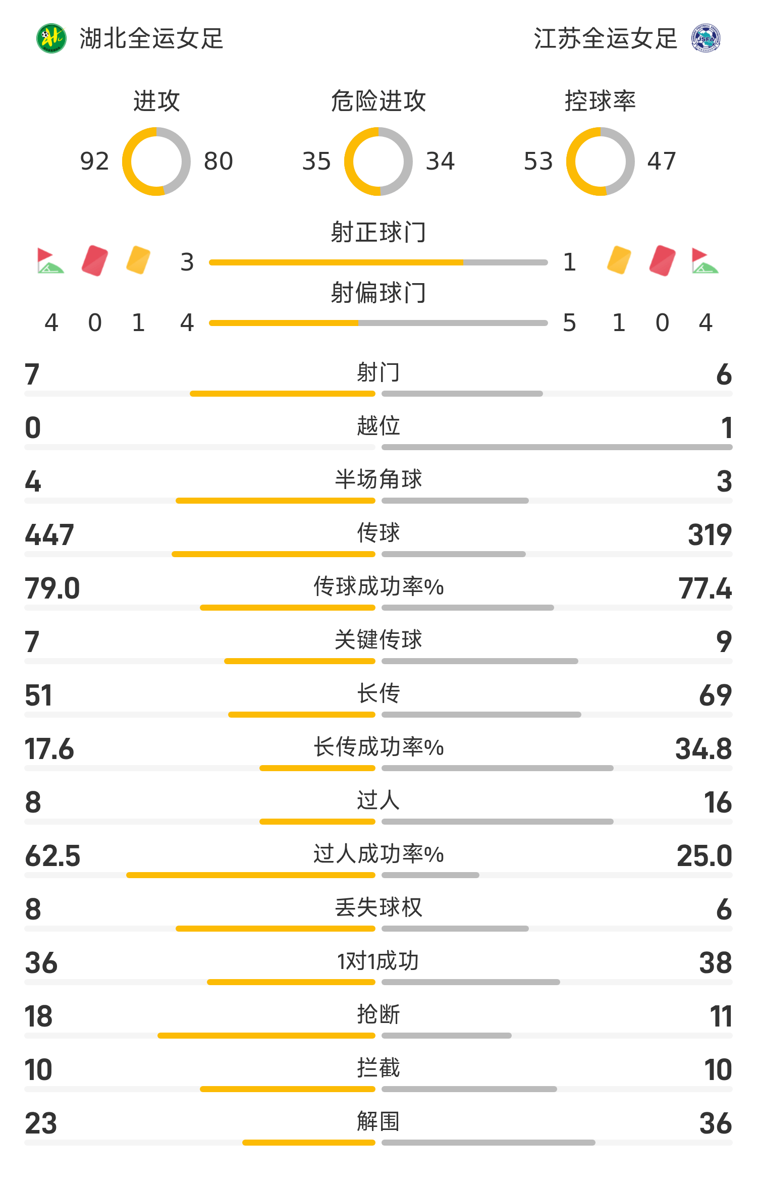 湖北全运女足首发阵容:22-陈晨、5-吴海燕、15-刘艳秋、13-徐倩倩、37-宋端(68’28-宋菲)、10-姚伟、19-闫琪、18-罗泺(60’21-代陈颖)、7-王霜、9-吕悦云(60’26-姜晨璟)、27-邓梦晔(82’8-李婷婷)