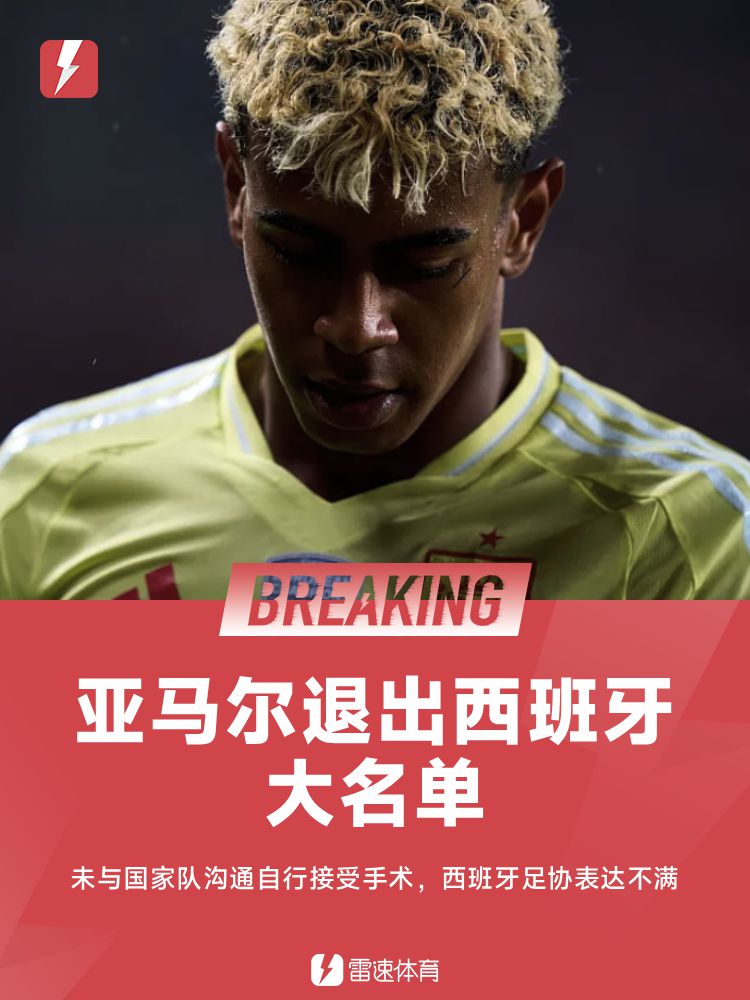 西班牙官方:亚马尔未与队医沟通并接受手术,退出本期国家队
