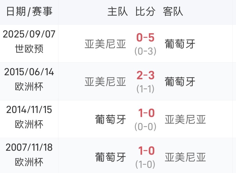 占据上风!葡萄牙与亚美尼亚近四次交手全胜