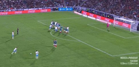 39’罗德里格斯主罚自由球直接打门,被兰格尔轻快将球没收