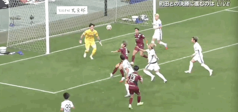 52’佐佐木大树三秒区顶球,皮球顶高出界