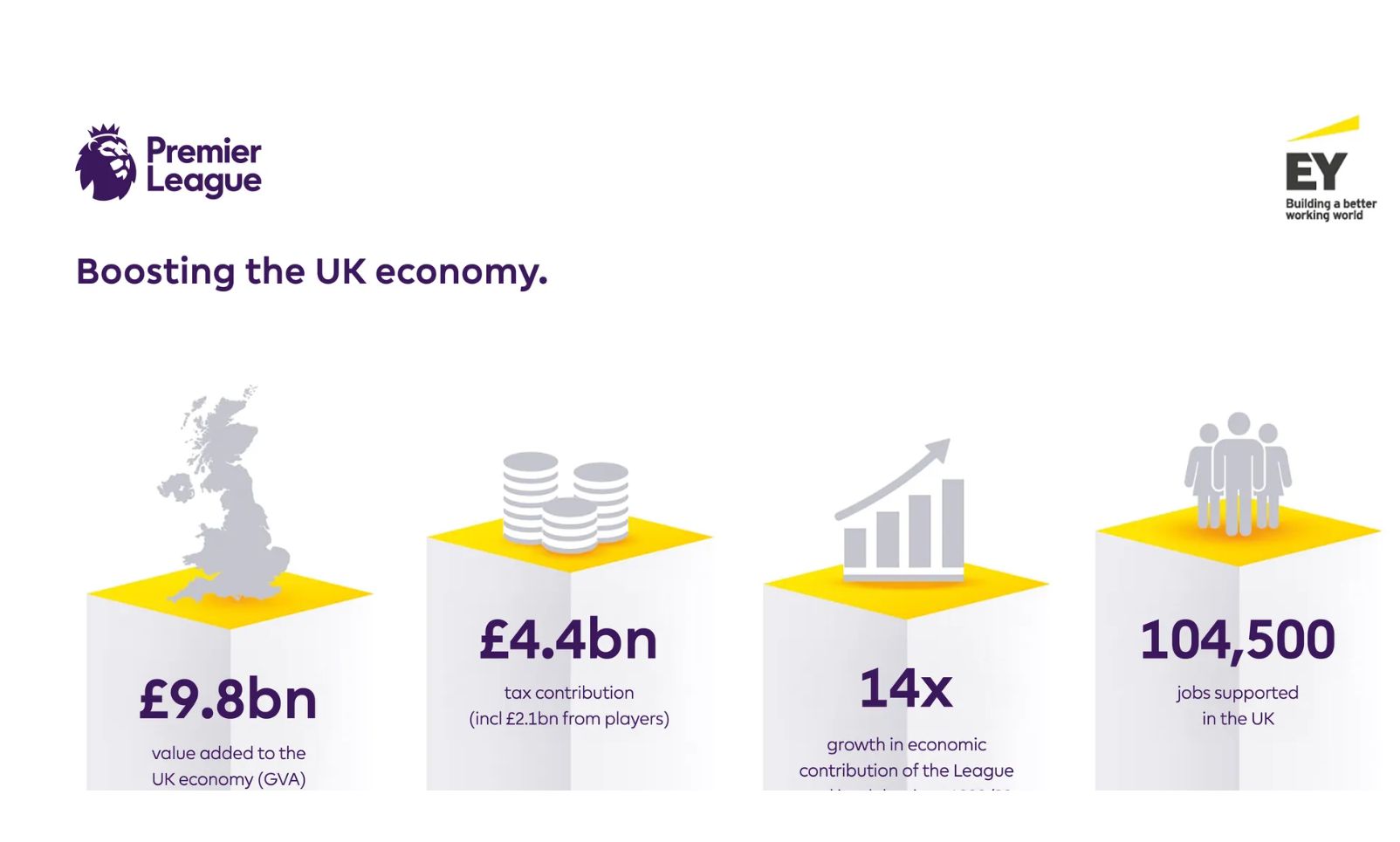 英超对英国经济增长贡献显著,23/24赛季创收98亿英镑