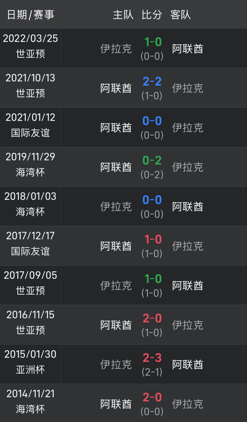 数据显示,阿联酋近10次对阵伊拉克,战绩为4胜3平3负,进10球丢8球。尽管看上去阿联酋略处上风,但双方近5场对阵,阿联酋战绩3平2负,且4次遭零封。