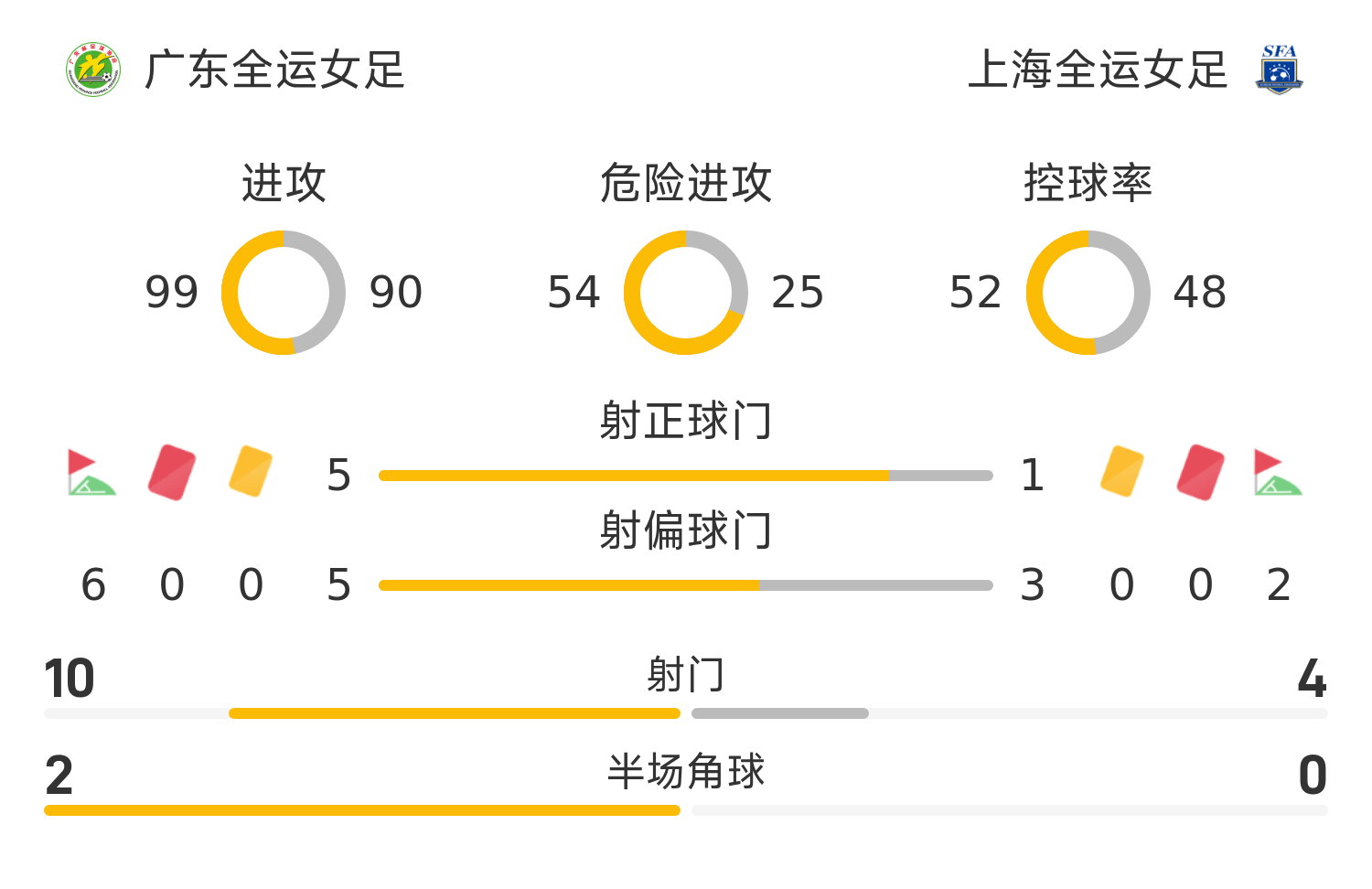 广东全运女足首发阵容:12-彭诗梦、22-陈巧珠、26-蒋晶、24-夏乐骄(71’17-罗桂平)、7-张子媚、13-李晴潼、21-陈秀冰、10-刘宣池、11-袁丛、20-乌日古木拉、37-欧阳玉环(59’9-谭茹殷)