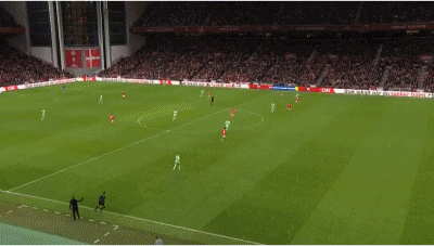 4’埃里克森主罚自由球直接打门,皮球被白俄罗斯人墙挡出