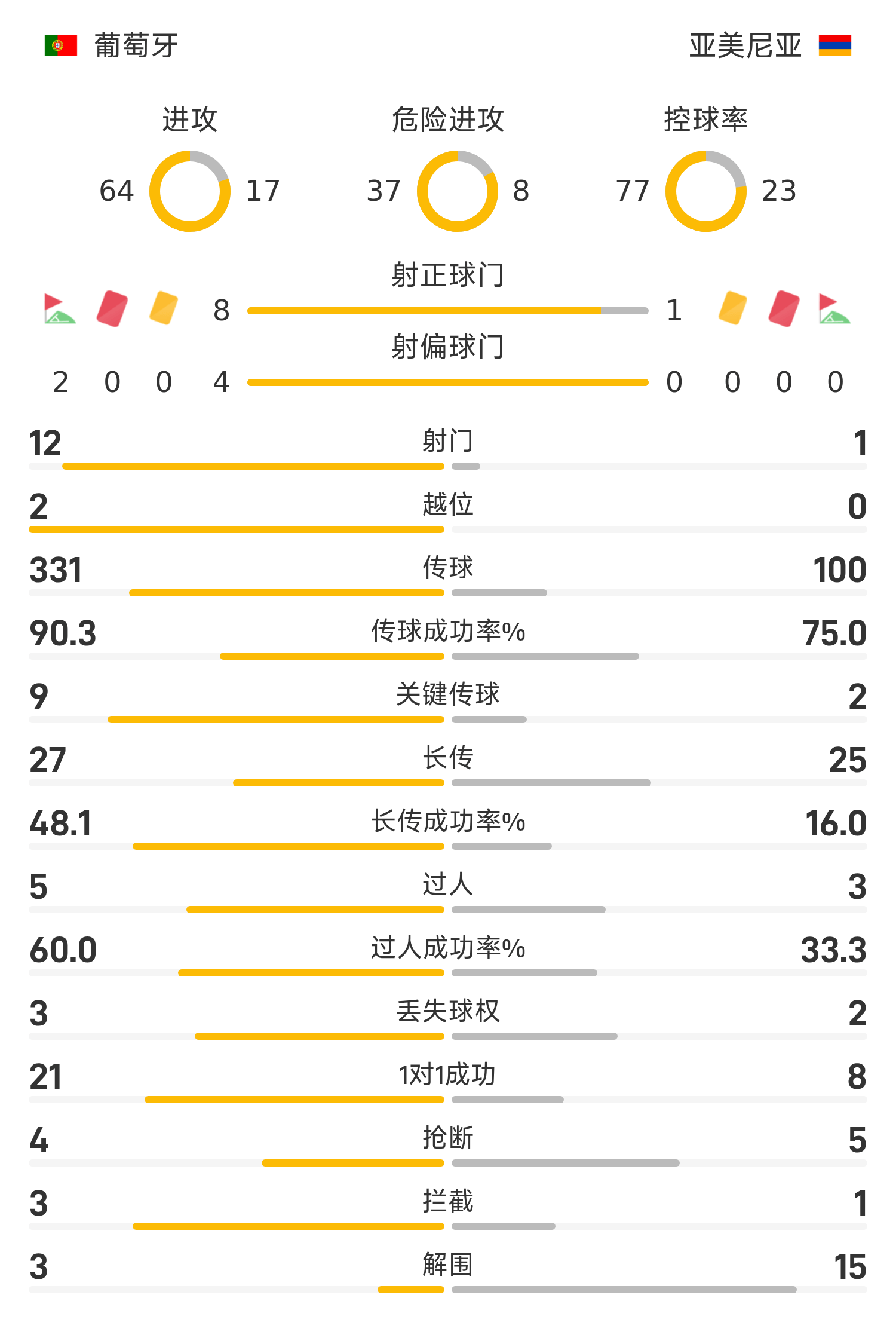 世欧预半场:内维斯双响,B费点射,葡萄牙5-1亚美尼亚