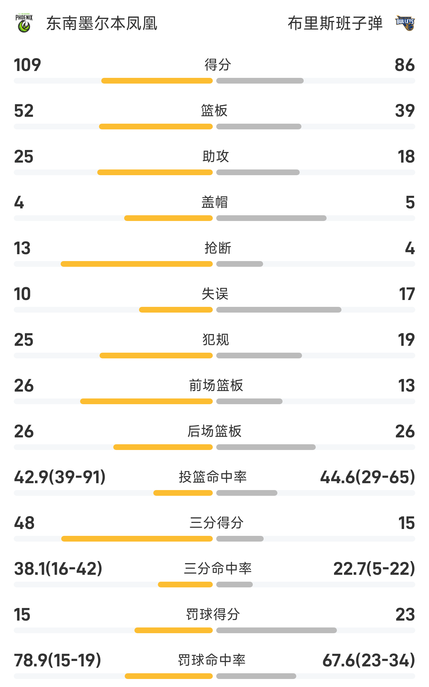 NBL战报:索比29分,东南墨尔本凤凰109-86大胜布里斯班子弹
