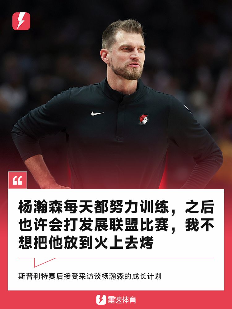 根据媒体人@yovic_报道,赛后开拓者临时主帅斯普利特谈到杨瀚森时表示:“杨瀚森每天都在加强身体和提高速度,之后也许会去发展联盟打竞赛,我不想把他放到火上去烤。”