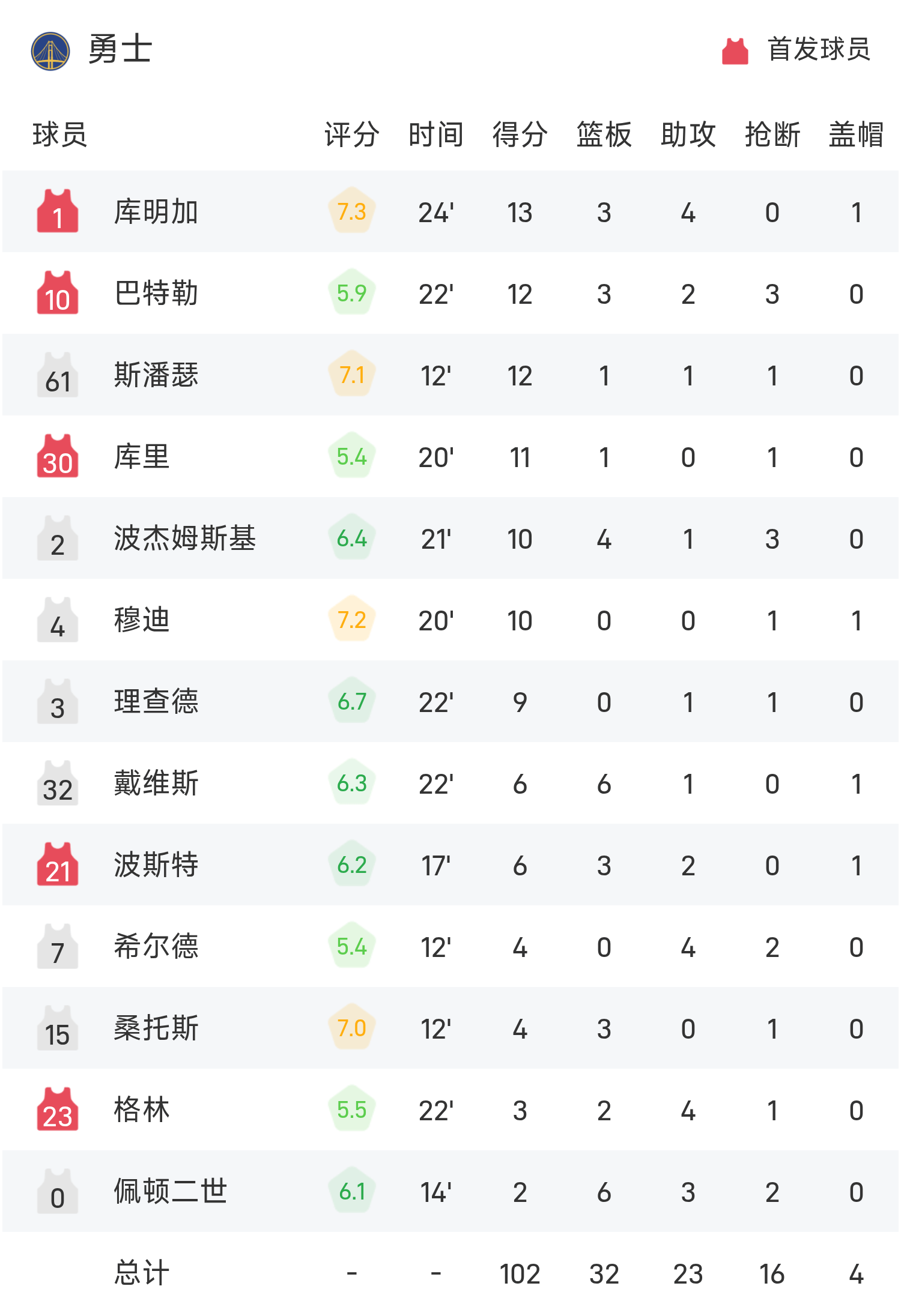 6686体育官网11月12日讯 25/26赛季NBA 常规赛,雷霆对阵勇士。双方全场战罢,雷霆124-102战胜勇士。亚历山大砍下全场最高的28分5板11助,率领雷霆胜利取胜。
